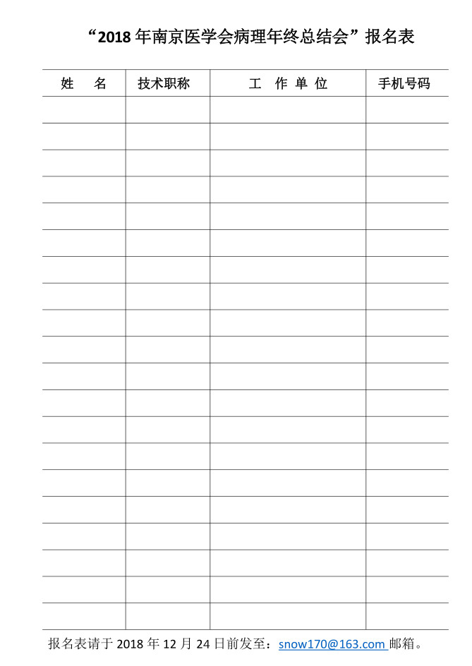 南京医学会病理分会和病理质控中心定于2019年1月5日(周六)上午9:00,在江宁开发区南京丽湖雅致酒店,召开“2018年南京医学会病理年终总结和质控大会”。该会议将由江宁医院病理诊断中心承办。为做好会议准备,各单位尽快上报拟参加的人数,报名截止日期2018年12月24日。欢迎各单位积极派人参加这一年一度南京病理的盛会。