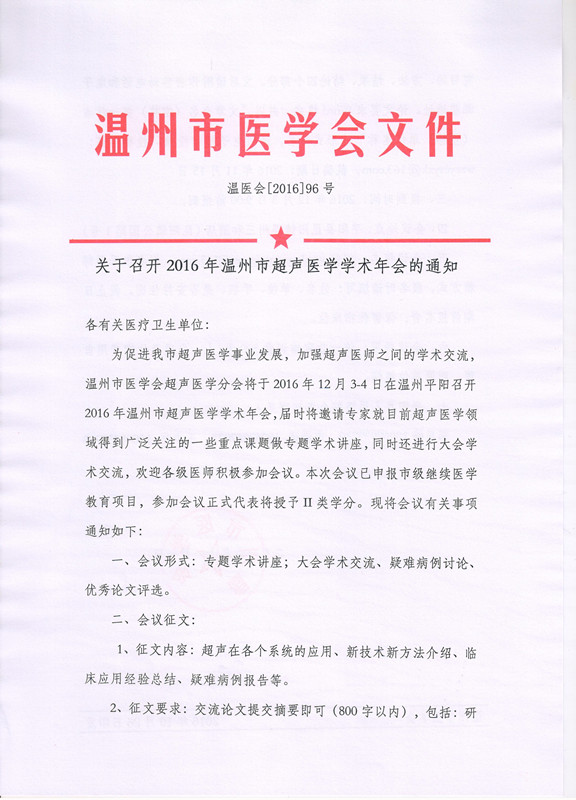 2016年温州市超声医学学术年会