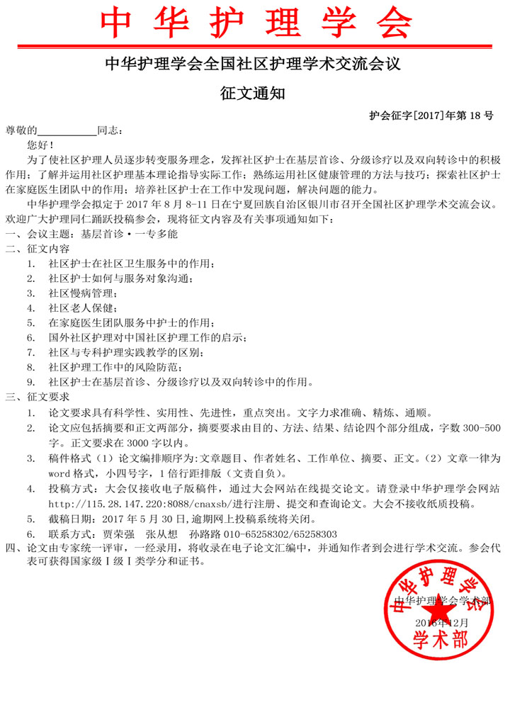 中华护理学会全国社区护理学术交流会议