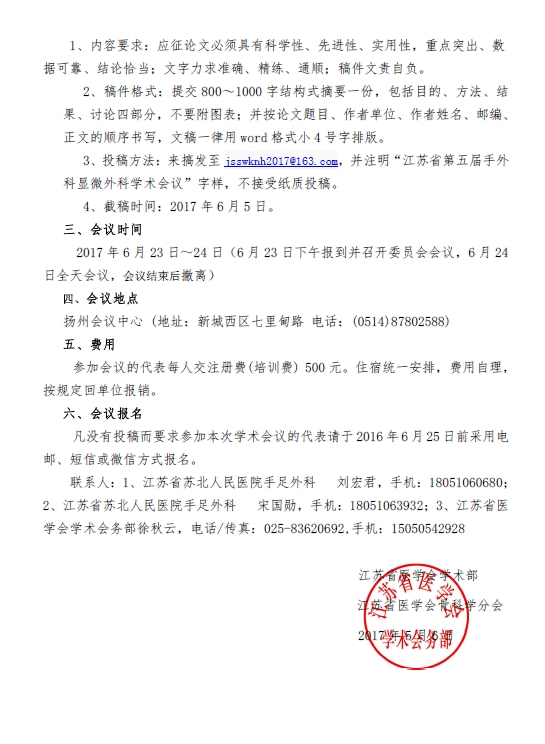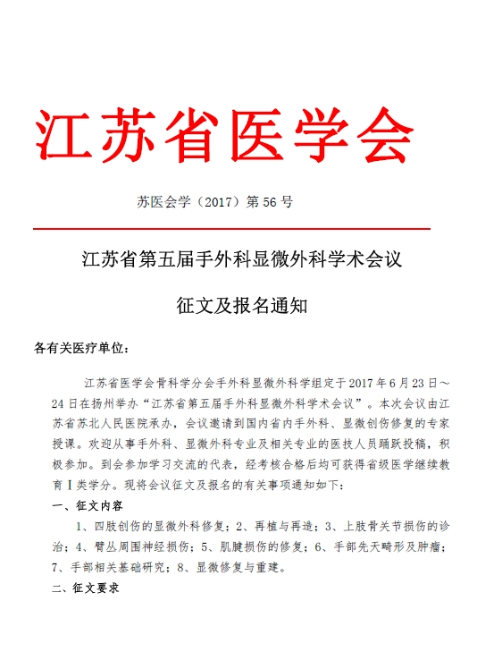 2017年江苏省第五届手外科显微外科学术会议