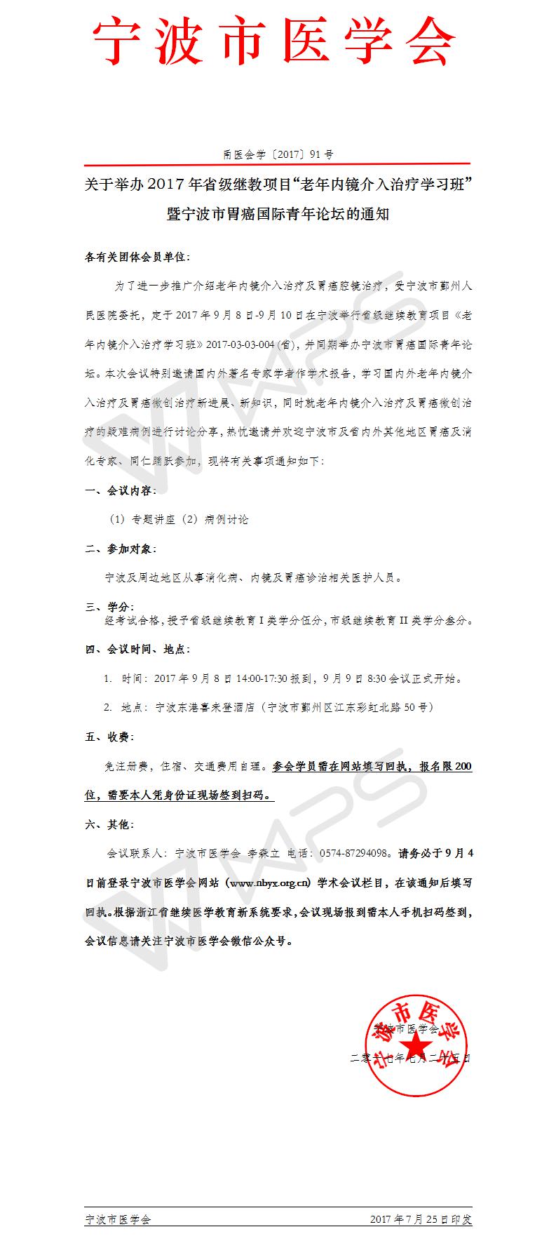 宁波市老年内镜介入治疗学习班暨宁波市胃癌国际青年论坛