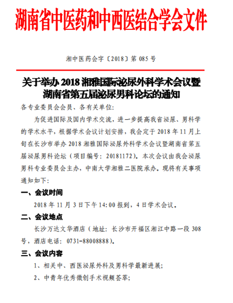 2018湘雅国际泌尿外科学术会议暨湖南省第五届泌尿男科论坛
