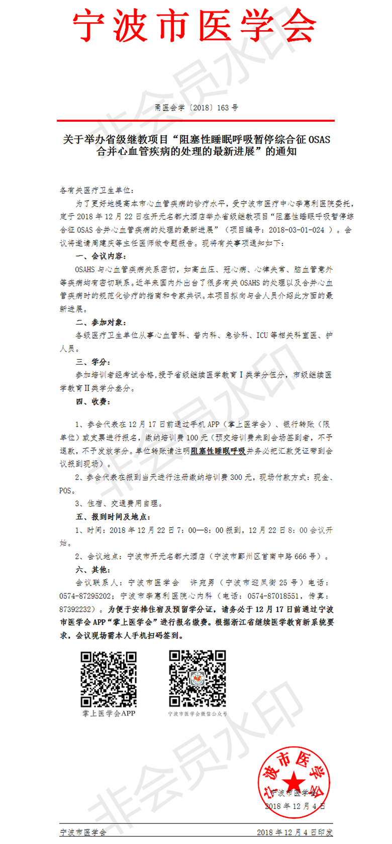 省级继教项目“阻塞性睡眠呼吸暂停综合征OSAS合并心血管疾病的处理的最新进展”的通知.rar