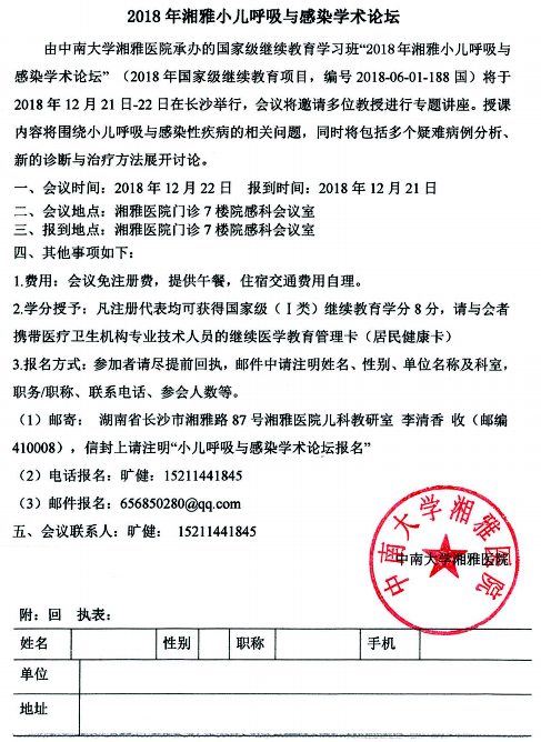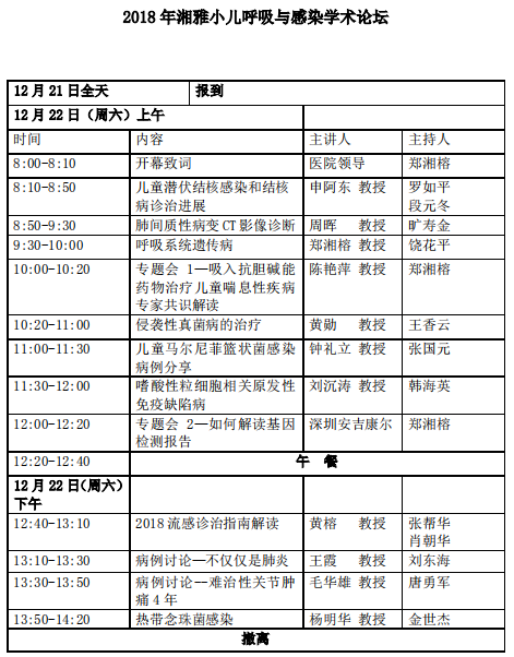 2018年湘雅小儿呼吸与感染学术论坛