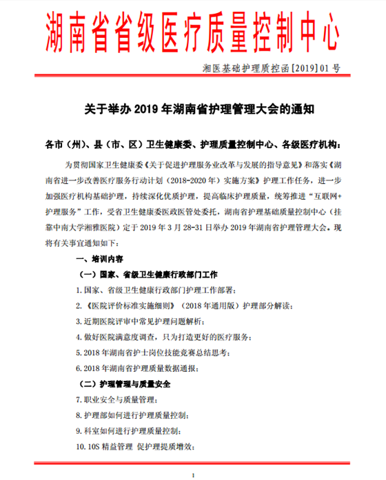 2019年湖南省护理管理大会