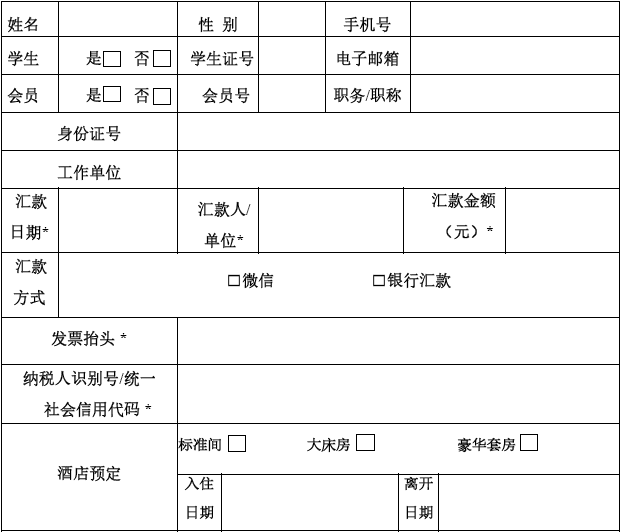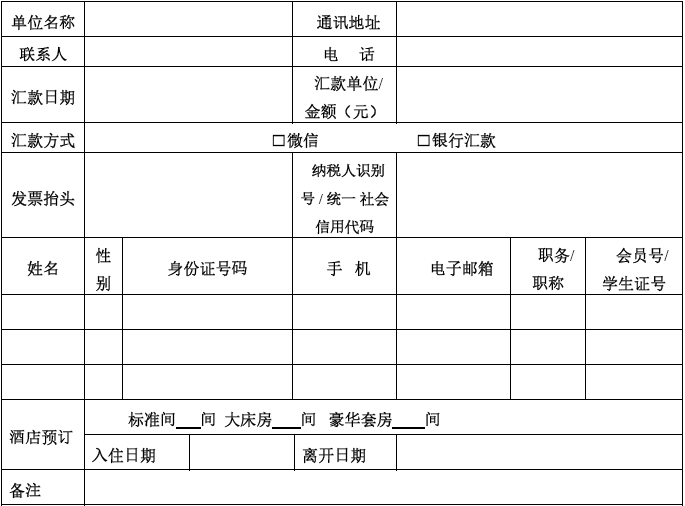 4、如单位人员行程不同,请在备注栏分别注明入住、离开日期及所需房型数量。