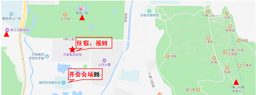 南郊宾馆:注册报到及会场所在酒店。会务协议价:标准间440元/天(含双早),大床房490元/天(含单早),豪华套房900元/天(含单早),会务组代订,详细酒店、交通信息见附件3。