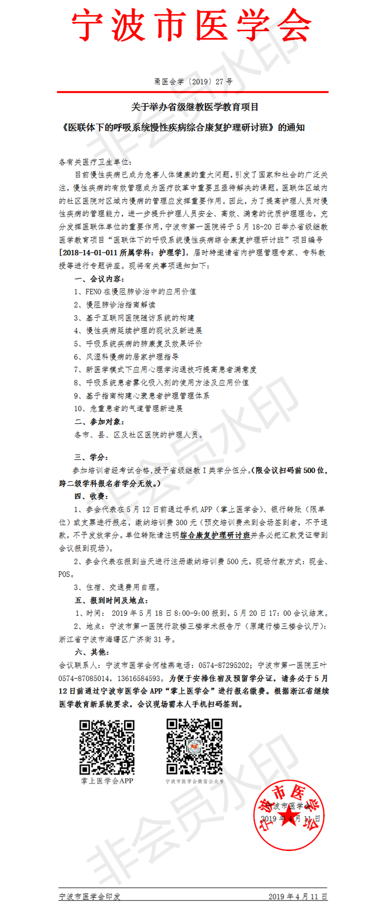 浙江省级继教医学教育项目《医联体下的呼吸系统慢性疾病综合康复护理研讨班》