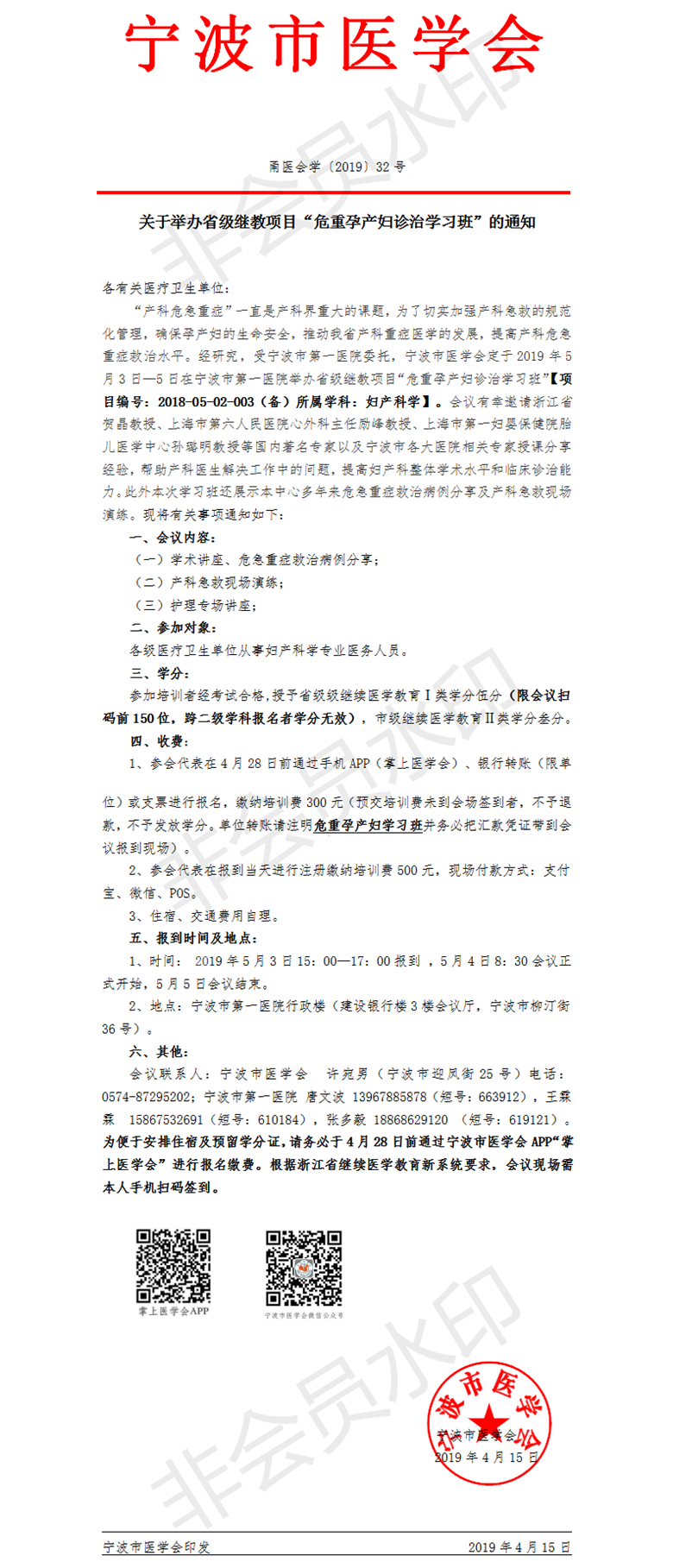 浙江省级继教项目“危重孕产妇诊治学习班”