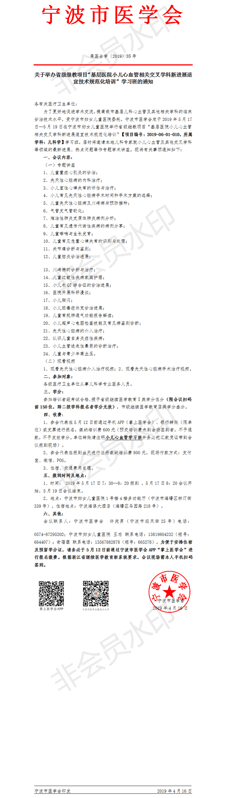 浙江省级继教项目“基层医院小儿心血管相关交叉学科新进展适宜技术规范化培训”学习班