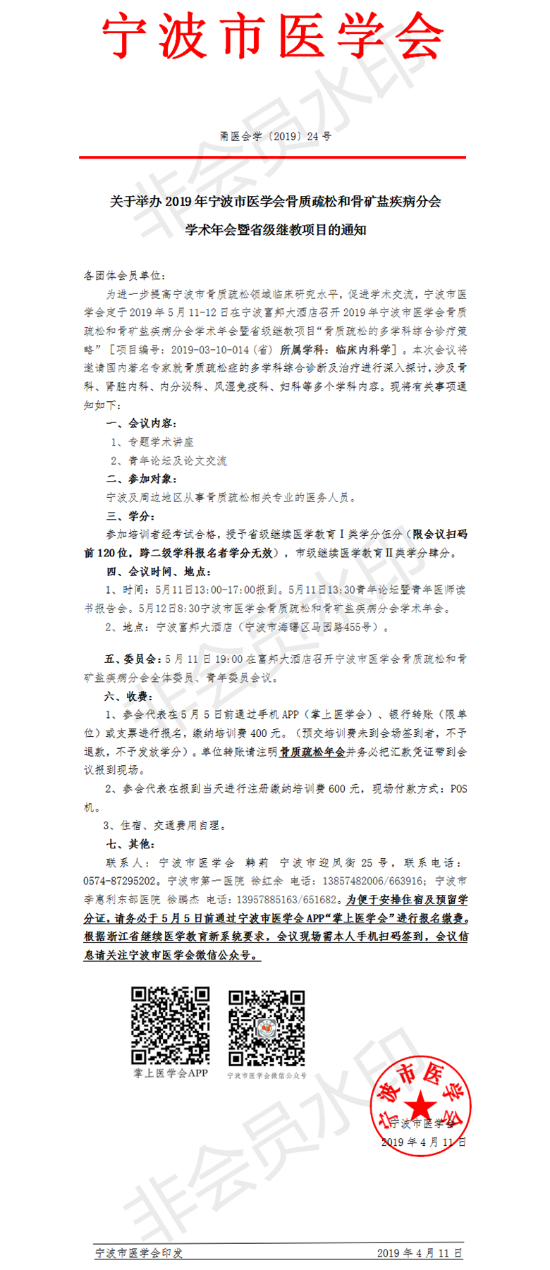 2019年宁波市医学会骨质疏松和骨矿盐疾病分会学术年会