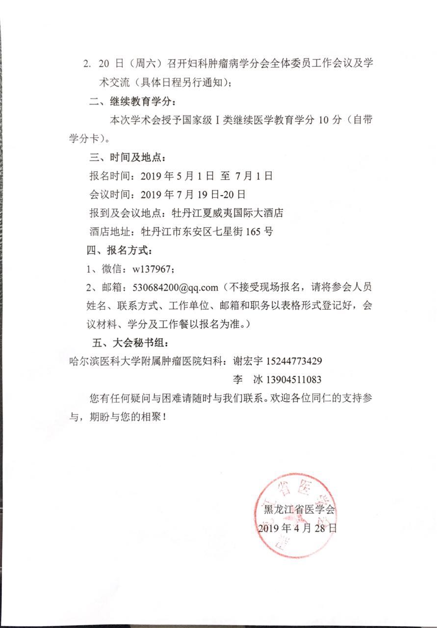 黑龙江省医学会妇科肿瘤病学分会学术年会