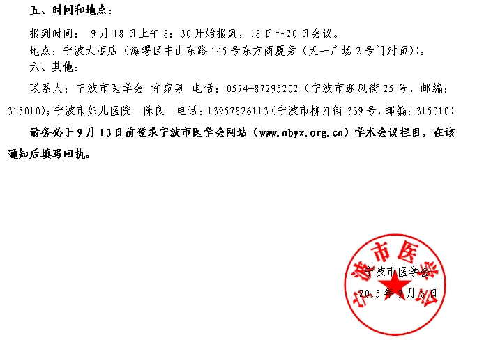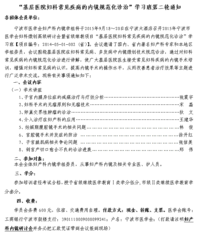 2015年宁波市医学会妇科微创高级研讨会暨省级继教项目“基层医院妇科常见疾病的内镜规范化诊治”学习班