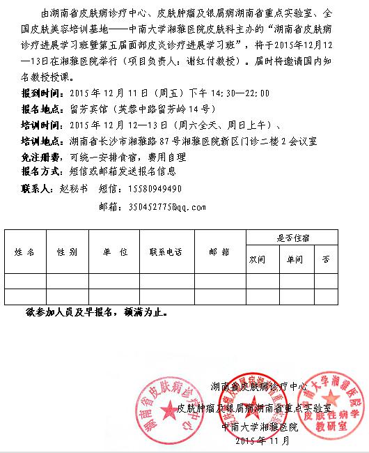 2015年湖南省皮肤病诊疗进展学习班暨第五届面部皮炎诊疗进展学习班