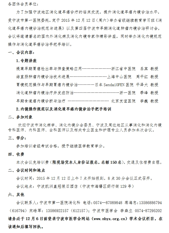 《消化道早癌内镜诊治规范与进展》暨第四届宁波市早期消化道肿瘤内镜诊治研讨会