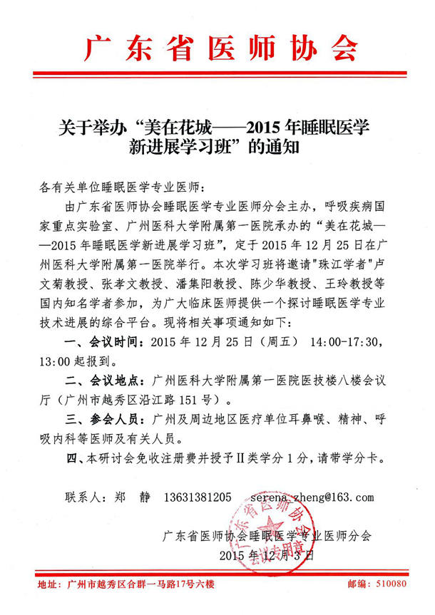 美在花城--2015年睡眠医学新进展学习班