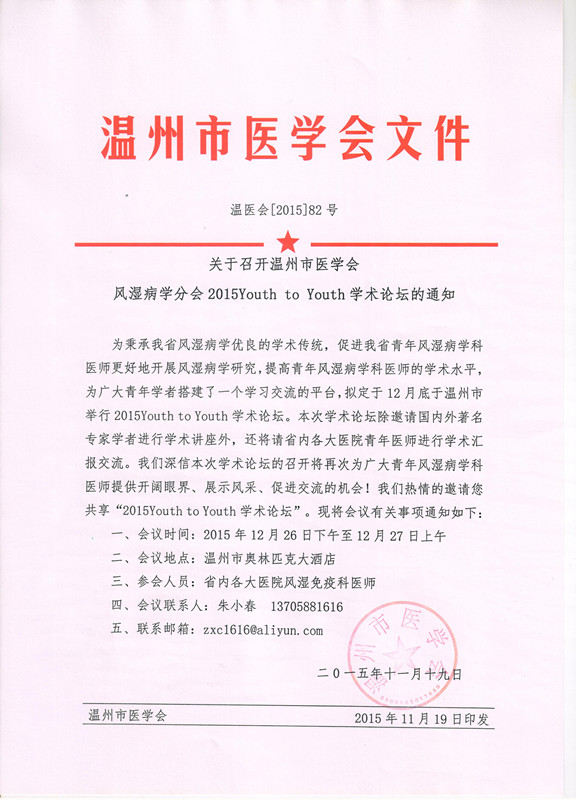 温州市医学会风湿病学分会2015Youth to Youth学术论坛