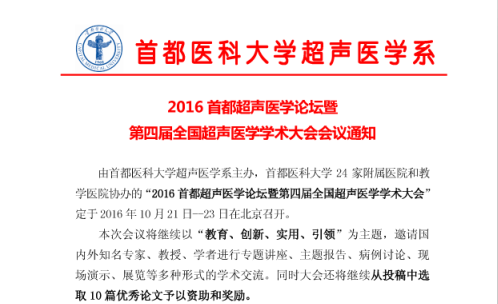 2016首都超声医学论坛暨第四全国超声医学学术大会