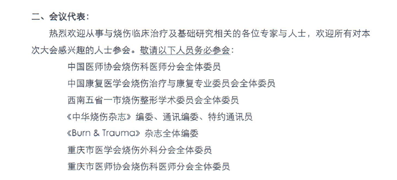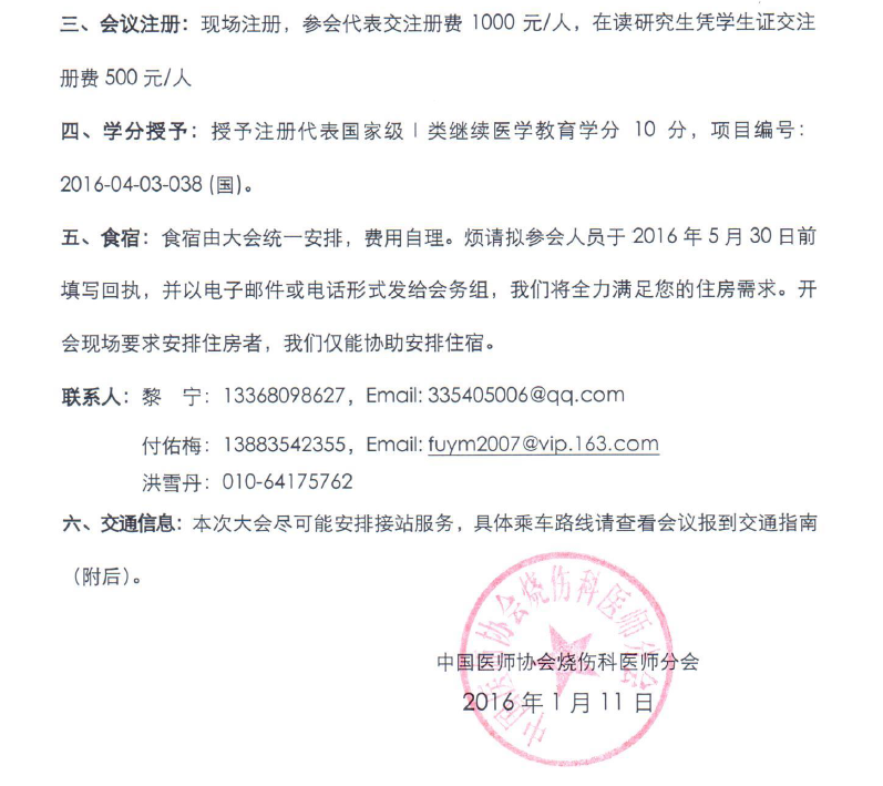 2016年国际烧伤高峰论坛、2016年中国医师协会烧伤科医师分会年会、 第三届国际创面修复与烧伤康复会议、2016年中国康复学会烧伤康复分会年会暨第十届西南五省一市烧伤整形学会届会