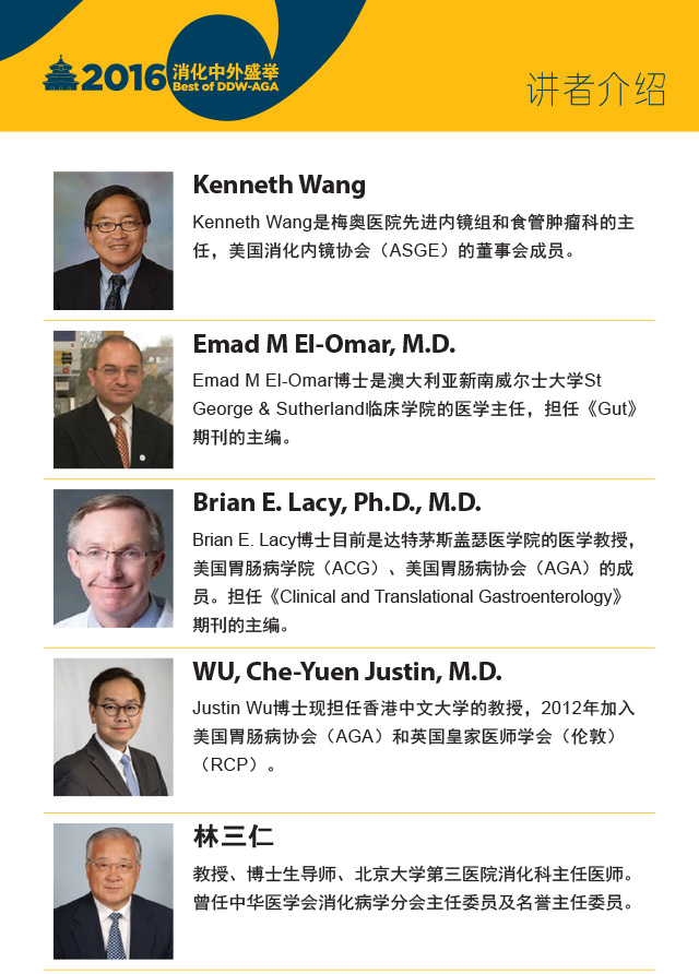 “2016消化中外盛举(Best of DDW-AGA)”讲者