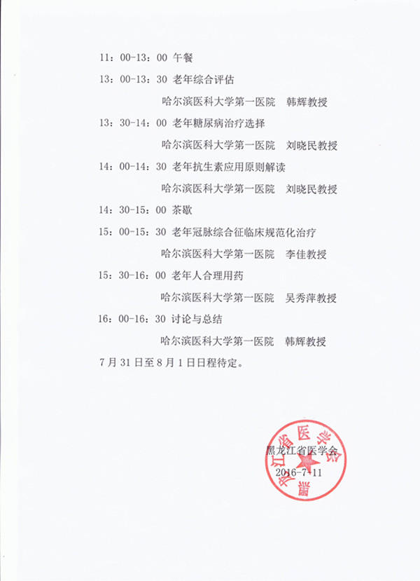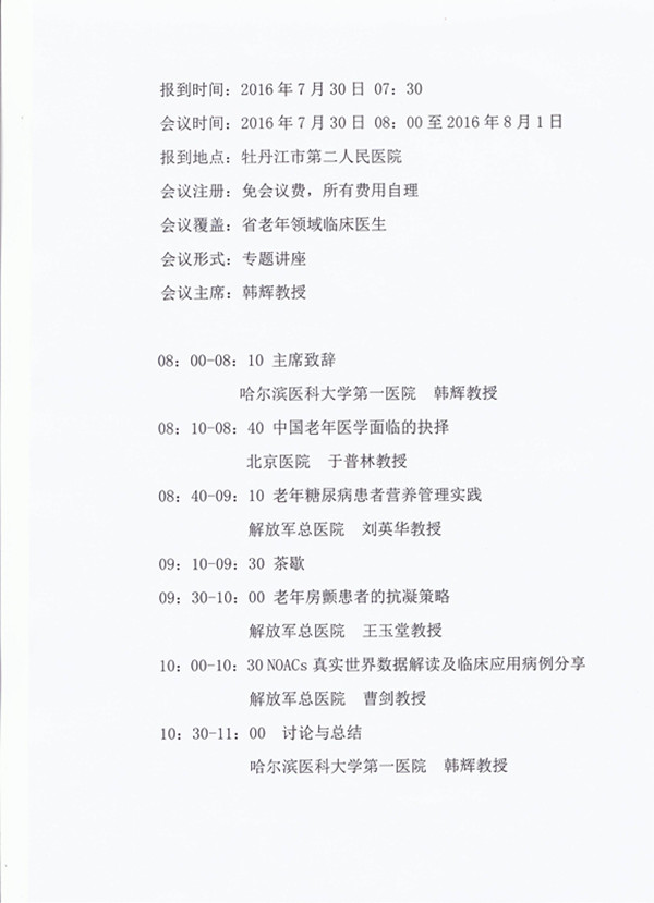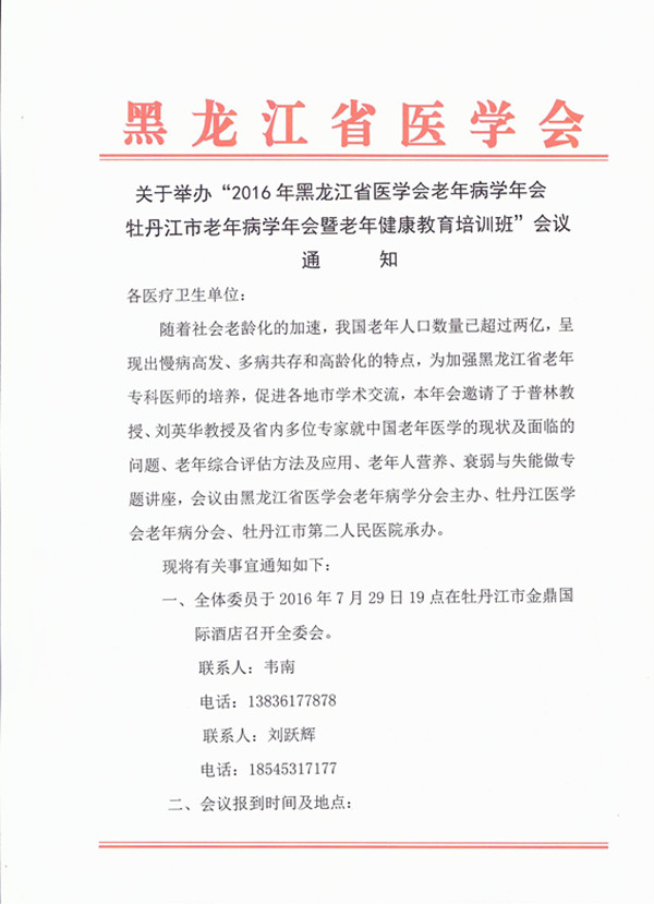 2016年黑龙江省医学会老年病学年会牡丹江市老年病学年会暨老年健康教育培训班