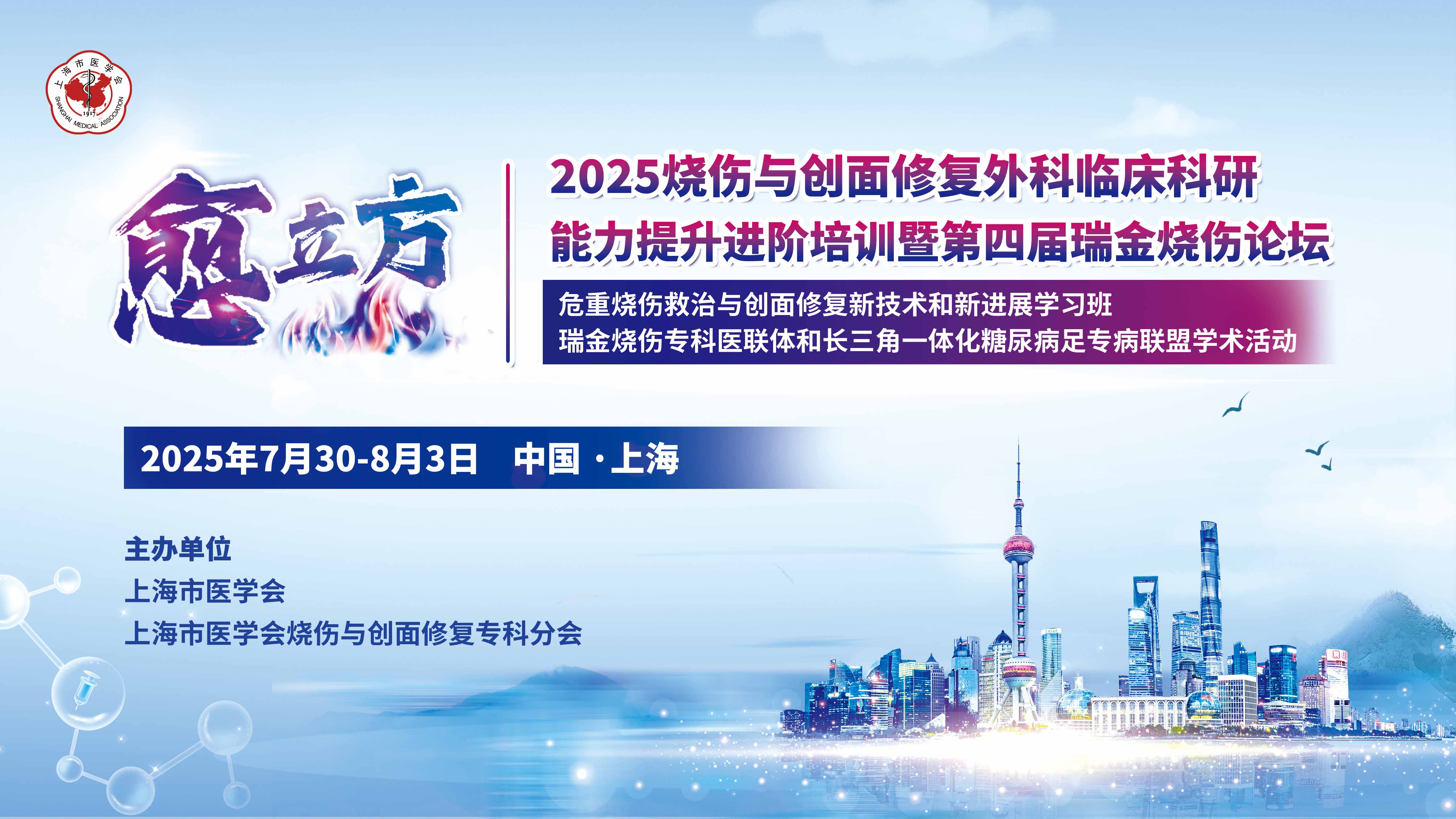 由上海市医学会、上海市医学会烧伤与创面修复专科分会主办的“2025烧伤与创面修复外科临床科研能力提升进阶会暨第四届瑞金烧伤论坛”将于7月30日-8月3日在上海举行