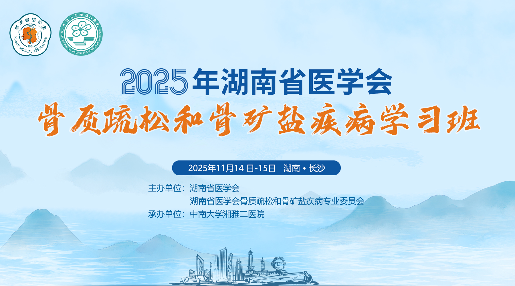 为了促进骨质疏松和骨矿盐疾病新进展和新知识的交流,湖南省医学会骨质疏松和骨矿盐疾病专业委员会于2025年11月在长沙举办“2025年湖南省医学会骨质疏松和骨矿盐疾病学习班”【2025-03-06-031(国)】。