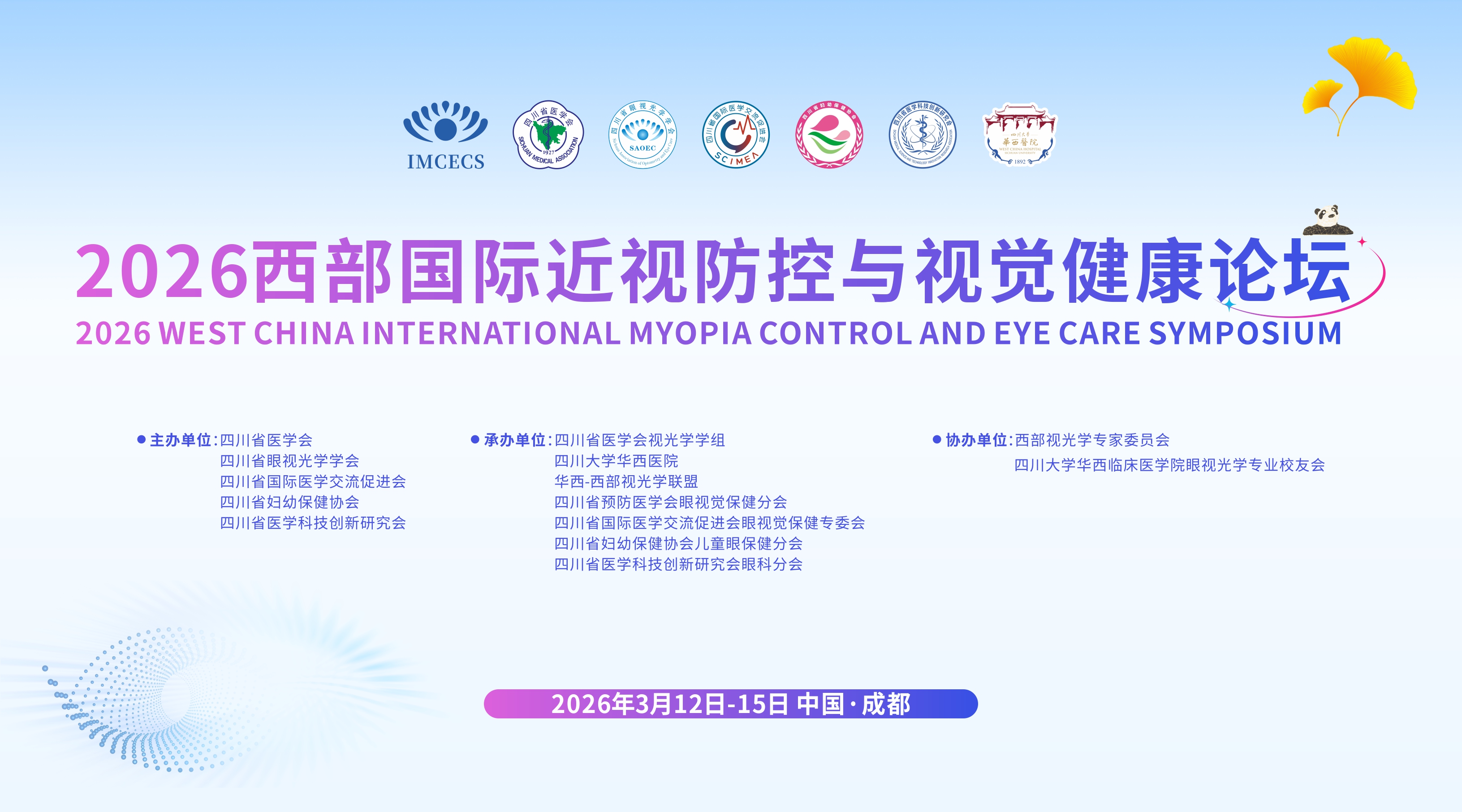 为推动西部近视防控和视觉健康管理事业的发展,促进西部各省(市)视光学的发展、促进产学研成果转化和应用、推动医疗健康领域新质生产力发展,经研究,“2026年西部国际近视防控与视觉健康学术会议”定于2026年3月12-15日在成都市召开。