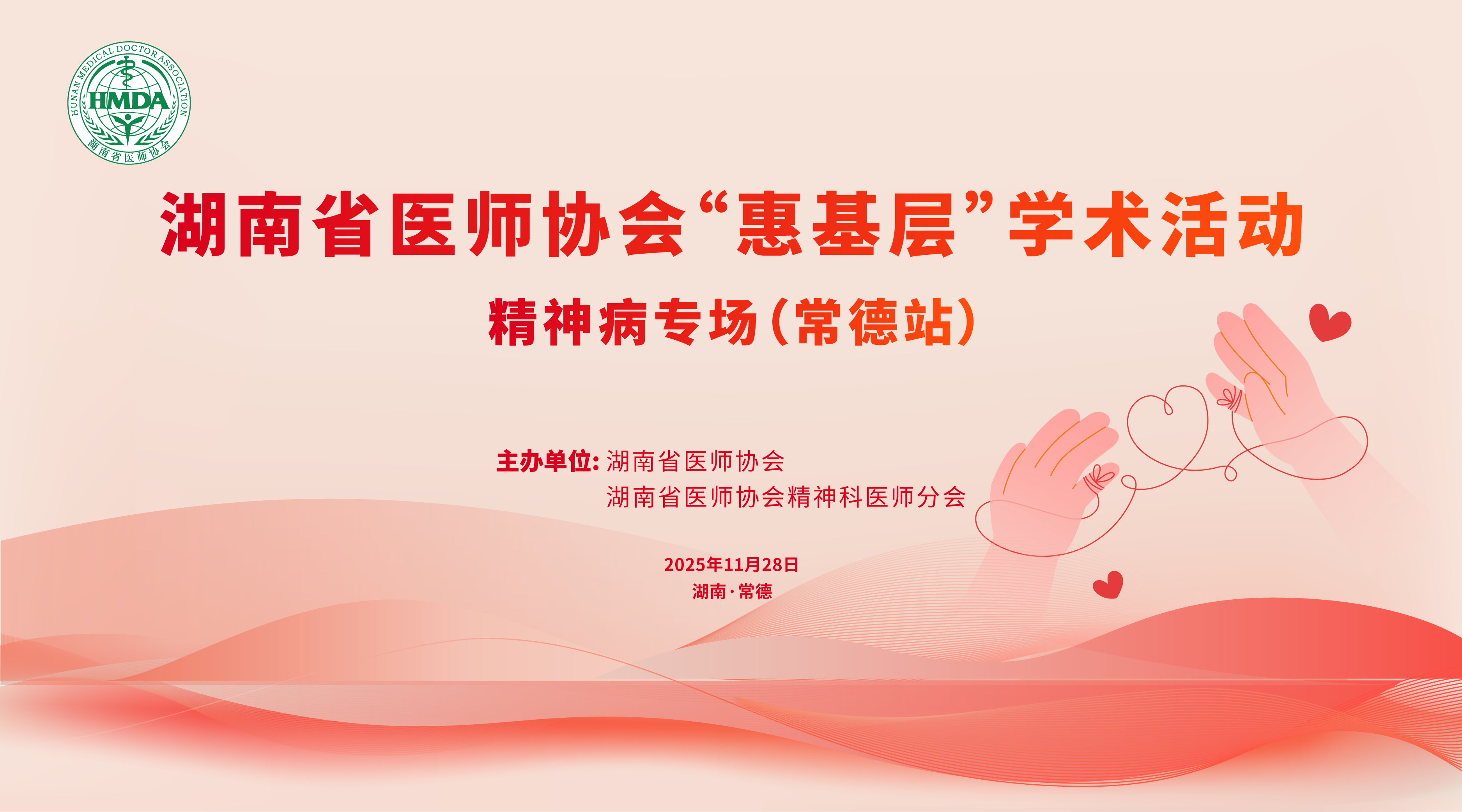 为深入贯彻落实新时代党的卫生与健康工作方针,切实把“以基层为重点”落到实处,强化基层医疗服务能力,加快推进基层卫生健康事业高质量发展,助力健康湖南建设,由湖南省医师协会举办的“惠基层”学术活动——精神病专场(常德站)拟定于2025年11月28日在湖南省常德市召开,现将有关事项通知如下: