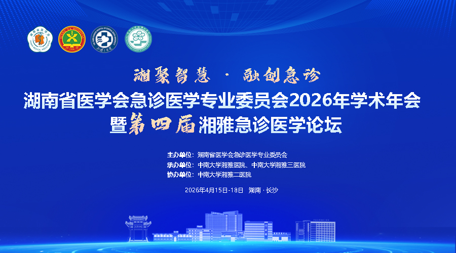 由湖南省医学会急诊医学专业委员会主办,中南大学湘雅医院、中南大学湘雅三医院承办,中南大学湘雅二医院协办的“湖南省医学会急诊医学专业委员会2026年学术年会暨第四届湘雅急诊医学论坛”拟于4月16日-18日在湖南省长沙市融通长城宾馆召开。