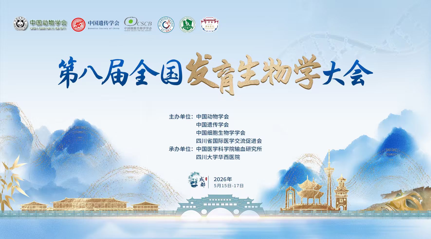 为促进我国发育生物学领域科研交流与合作,展示该领域最新研究成果与前沿进展,第八届全国发育生物学大会将于2026年5月15日至17日在四川成都召开。本次大会由中国动物学会、中国遗传学会、中国细胞生物学学会、四川省国际医学交流促进会联合主办,中国医学科学院输血研究所与四川大学华西医院共同承办。