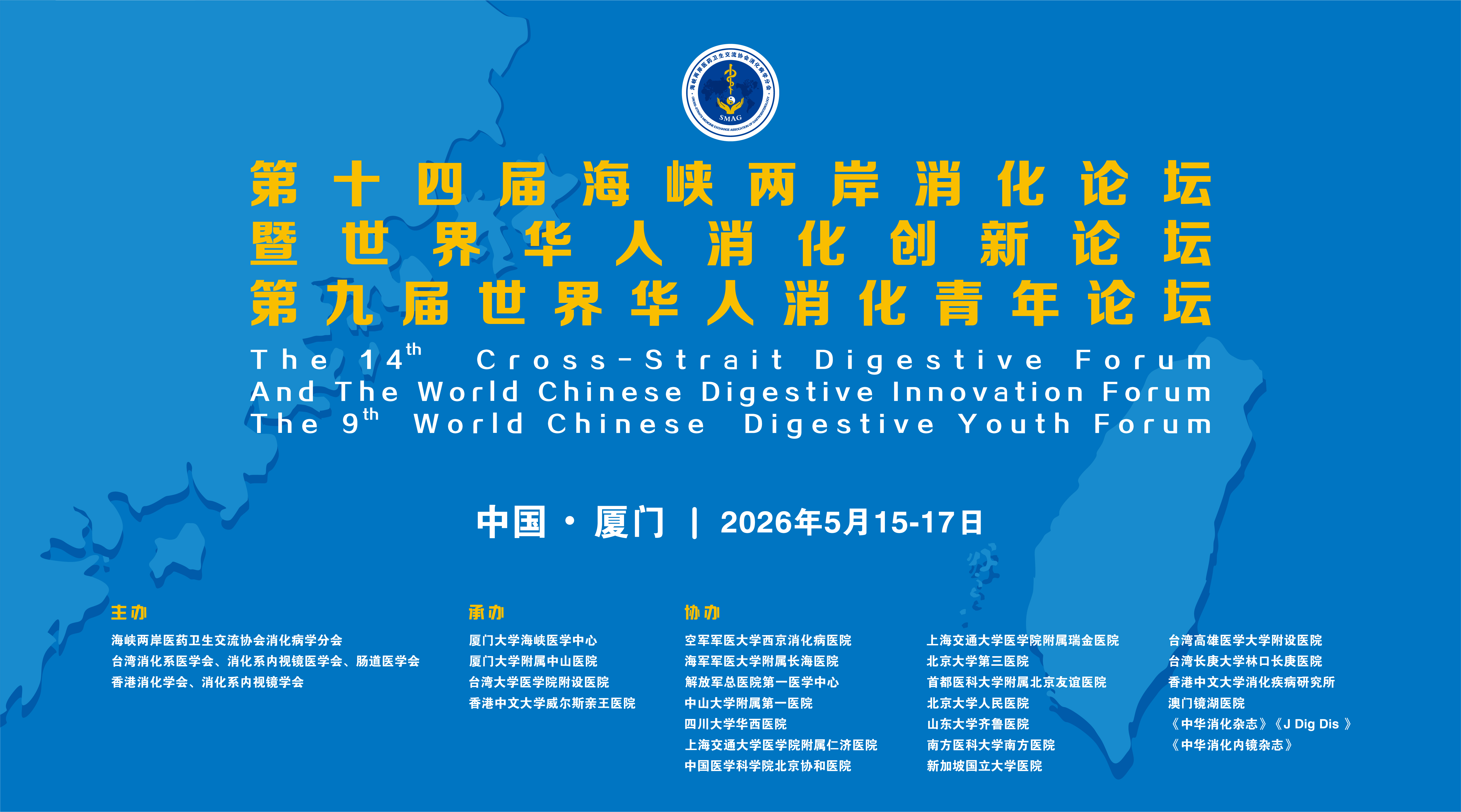 为了进一步促进海峡两岸消化病、消化内镜、肝病等领域的学术交流,增进两岸专业医师的相互了解,由海峡两岸医药卫生交流协会消化病学分会主办,厦门大学附属中山医院、台湾大学医学院附设医院、香港中文大学成尔斯亲王医院共同承办的“第十四届海峡两岸消化论坛暨世界华人消化创新论坛、第九届世界华人消化青年论坛”将于2026年5月15—17日在厦门海悦山庄酒店召开。